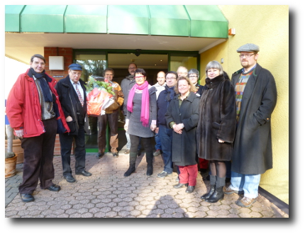 Nach einer sehr herzlichen Begrüßung durch das Ehepaar Sanden und einige Mitarbeiter besichtigten wir zunächst die Räumlichkeiten in Breitenbenden. Helle, freundliche Zimmer und Gemeinschaftsräume konnten wir uns ansehen. Die Arbeitsplätze und die dort hergestellten Produkte erläuterte eine Einwohnerin. Je nach Krankheitsverlauf kann stundenweise bis zu ganztägig gearbeitet werden. Dann ging’s ins Haus Vussem, wo die neuen Leitlinien – weg von der Zweierbelegung hin zur Einzelbelegung mit entsprechend notwendigen Umbaumaßnahmen - weitgehend umgesetzt sind.